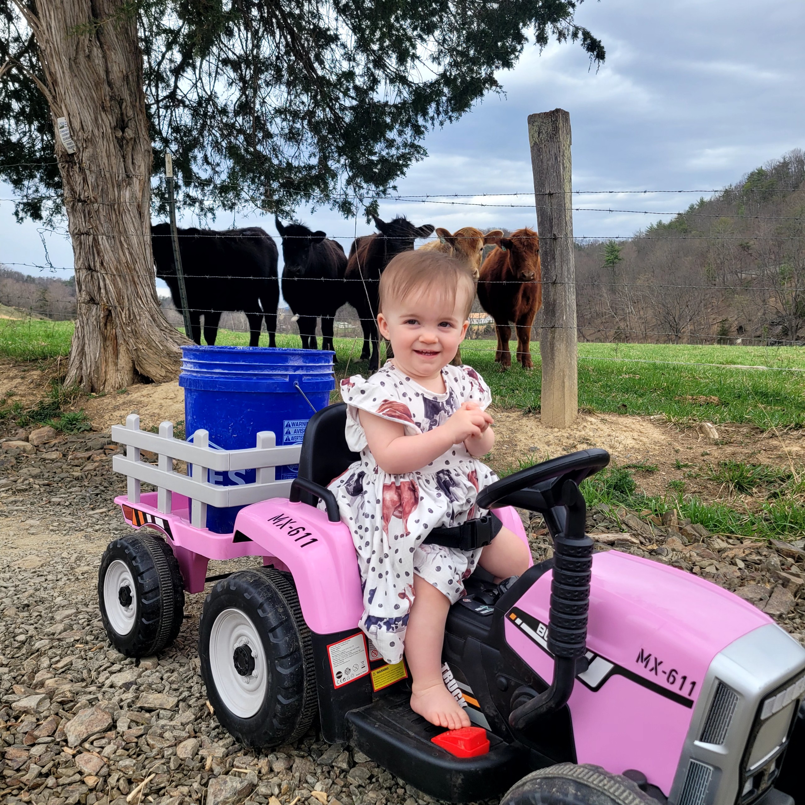 Our older daughter Cora earned her Doctorate in Veterinary Medicine. She joined a mixed animal practice in West Virginia’s eastern panhandle, but her passion is caring for food animals. Her husband Branden did not come from a farming background. He was introduced to the farm life by a close family friend. After they were married, he left his factory job to follow Cora and pursue their dreams. Cora and Branden purchased a small farm near Petersburg, West Virginia, and started their own operation, BC Cattle Company. They raise cattle, sheep and pigs. They were blessed by the birth of the newest shepherd, Wrenle, who already shares her parents passion for animals.