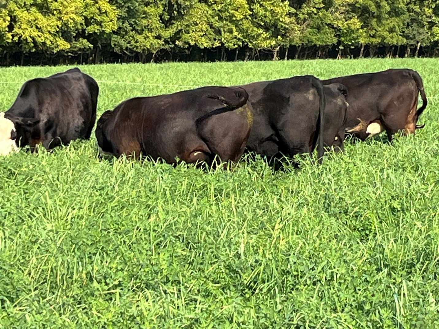 Temporary water systems and fencing were installed to allow livestock to graze the cover crops. The cattle spread manure over the fields and trampled plant residue into the soil. This helped to build fertility and relieve soil compaction. After several cycles of cover crops, we planted a diverse perennial grass and legume mixture in the fields. Permanent water systems and fencing were installed as funding allowed to optimize grazing efficiency. Today, our beef are finished on the newly established grass and legume pastures.